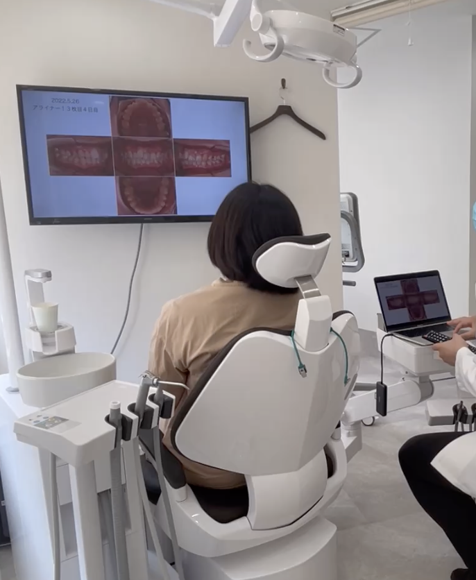 オンラインの場合は、レントゲンやスキャンなどの検査ができない分、所要時間は約30分です。Zoom上で可能な限り歯並びを視診しながら、治療のご希望(期間、抜歯/非抜歯、部分矯正、通院頻度など)を丁寧に伺い、マウスピース矯正で実現できる可能性があるかどうかを一次判定します。