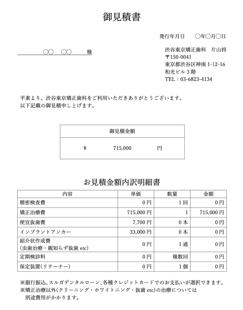 - 矯正治療費用と治療期間のご案内(概算)